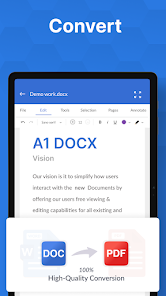 Word office 閱讀器和查看器可用於將 word 轉換為 pdf、xls 轉換為 pdf 或 pdf 轉換為 word 等。應用程序內轉換工具確保您無需上網即可轉換 word 文件。