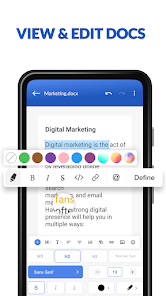 Word Office 閱讀器和查看器具有非常獨特且易於使用的界面,可直接從驅動器或手機訪問文件。閱讀文檔中的字數沒有限制。您可以輕鬆地使用手機屏幕向下滾動並輕鬆瀏覽文檔。