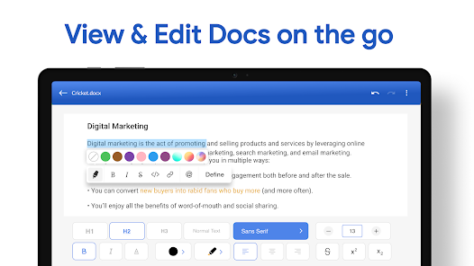 Word編輯器使您能夠編輯word、docx、doc、office、ppt、excel文件。您還可以查看編輯歷史記錄並跟踪與辦公工具相關的所有更改。這是一個完美的辦公工具,您需要它來管理 Word 文檔中的日常任務。