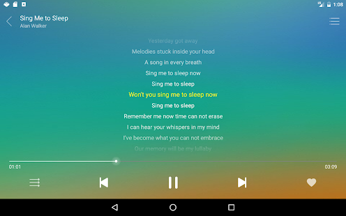 1、支持全屏歌手圖片、全屏歌詞、二行歌詞、桌面歌詞(長按關閉)、支持優先顯示本地歌詞(支持utf8、gbk和gb2312三種歌詞編碼)