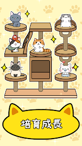 你只需要持續將可愛的小貓咪合成出各種毛茸茸的貓科動物就可以將你小小的貓咪公寓建設成貓咪大樓。