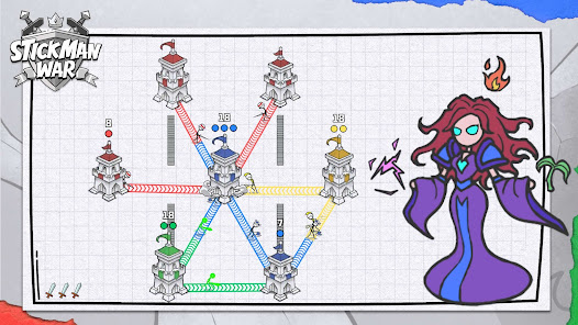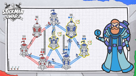 - 最終目標是讓你的藍色火柴人佔領所有塔樓。