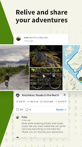 使用 GPS 追踪器繪製您的自行車、步行和跑步冒險地圖。添加照片、亮點和提示並建立您自己的個人冒險日誌永久保存您最喜愛的體驗。保存它們以供私人使用或與 komoot 社區分享以接收喜歡和評論並激勵其他戶外人士。關注您的朋友和志同道合的探險家跟上他們的戶外探險。