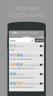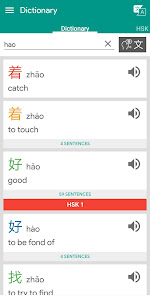 The Chinese Dictionary has more than 100,000 word translations and more than 1,600 example sentences. Search any hanzi, pinyin, or translation to get all the details: the meaning, the hanzi, the tones, the primary radical, related lesson, any related word, many example sentences, and much more. It isn't a simple dictionary, it also offers voice recognition (Chinese and English), more than 195 Chinese lessons (lessons are available in English, French, German, Italian, Russian, and Spanish), HSK grid with all HSK 1-5 words, and a MultiChoice Game to challenge you.