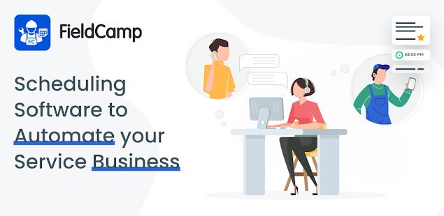 ✓ Get more work done by service business scheduling software. Fieldcamp keeps up. Scheduling, dispatching, invoicing, follow-ups, payment processing, reporting, and even customer reviews.