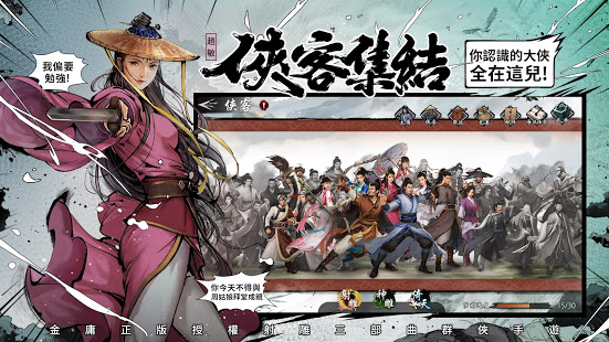 集齊射雕三部曲百位傳奇俠客盡情收集養成與大俠仗劍天涯。經典劇情還原國韻水墨動態演繹三層動效滿屏大招栩栩如生勾畫動態江湖。