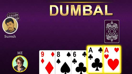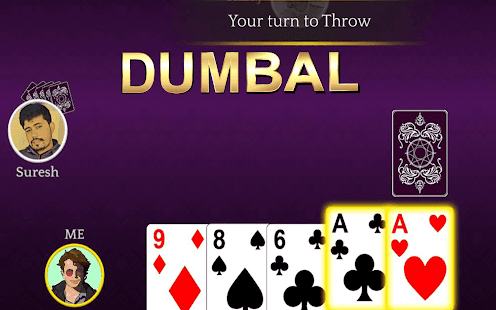 Dhumbal is a fun game played between 2-5 players with five cards distributed to each. The player should aim to have as a fewer sum of cards number as possible. You can throw pure sequences or same numbered cards to get the minimal value. One can show their cards when the total sum of cards number is less or equal to the required minimum value. Whoever has the lowest sum of cards number wins the game.