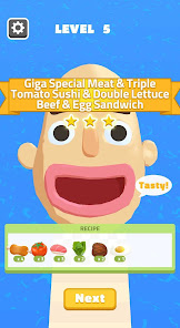 Sandwich will be eaten on goal and person who eat it reacts differently depending on the ingredients you picked up.