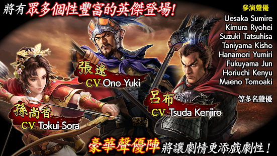 曹操、劉備、孫權、呂布……等多位三國志武將與你一起並肩作戰遊戲中每個武將都會有不同的技能、能力屬性顯現出專屬的「強大」以及「個性」並搭配上專屬的日文配音讓你更能融入《三國志》系列的氣氛中