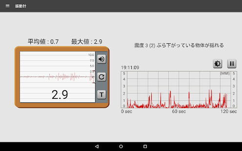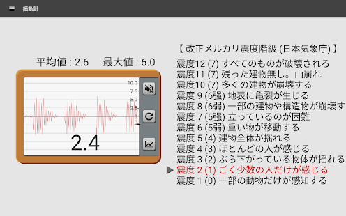 振動計使用手機的傳感器來測量手機的震動或地震,它可以像地震檢波器般作參考之用。