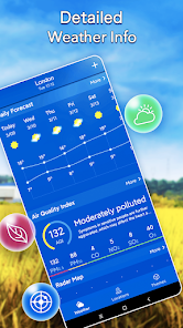 提供體感溫度、日出日落、濕度、紫外線、能見度、雨露、海拔、雲覆蓋率。