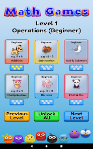 This colorful math game is great for students of all ages, from kids to adults. Although the mathematics topics are those studied by primary, elementary, and middle-school students (kindergarten to grade 8), this app provides excellent review and practice for older students as well. Math Games is also perfect for introducing your child to new mathematical concepts. With a little guidance, your child will quickly learn and conquer each mathematics challenge and really enjoy learning.