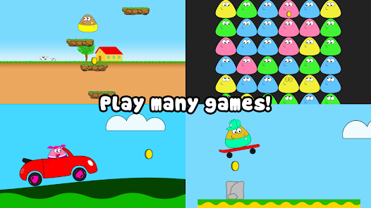餵養並照顧Pou並觀察它的生長在遊戲室玩遊戲並收集硬幣在實驗室試用魔藥自定義Pou的外觀嘗試新的服裝帽子和眼鏡自定義每個房間的牆紙解鎖成就和特殊物品訪問並與您的朋友一起玩與Pou交談並聽回去