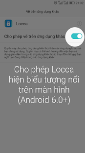 - From Android 6.0 onwards, apps need your permission to draw over other apps. In Locca's case, you will be asked for approval when enabling the floating lock icon.