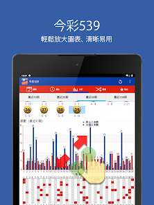 本程式提供相關「今彩539」的最新開獎號碼、開彩號碼往績、冷熱號碼分析、圖表說明。