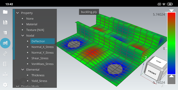 CAD Assistant允許您以線框,著色和收縮視圖查看網格。如果網格包含關聯的紋理,顏色或標量數據,則可以使用根據所選屬性著色的元素對其進行查看。對於標量,顯示了交互式色標,提供了控制顯示量範圍的控件。