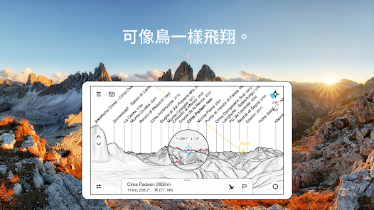 群山在召喚力爭在登山家隊伍中探索最多高山吧 PeakFinder讓您的夢想成真…還能以360°全景顯示所有山脈和山峰的名稱。