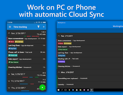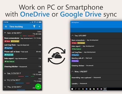 • 跨平台考勤卡/工作日誌應用程序,適用於您的所有設備(Android、Windows、iOS、macOS),包括。云同步