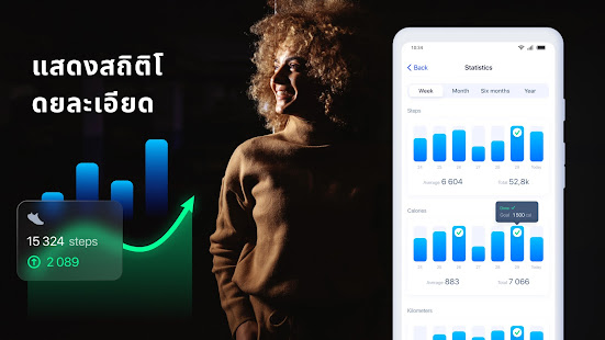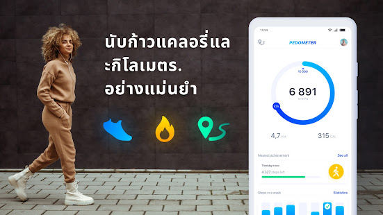 计步器顯示有關您的培訓的詳細信息。即使沒有打開pedometer,你也可以隨時看到自己的進步。全部將顯示在通知中。