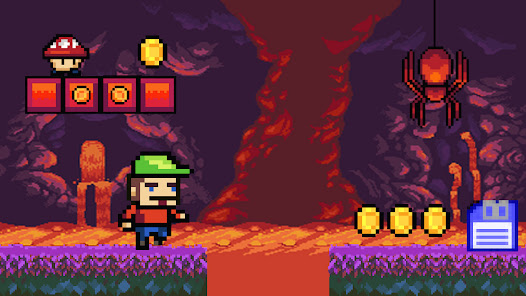 在復古遊戲中運行。這是wario的世界。平台遊戲。你能達到100級嗎?如果您喜歡像素藝術,請播放。這是一場16位遊戲的超級冒險。