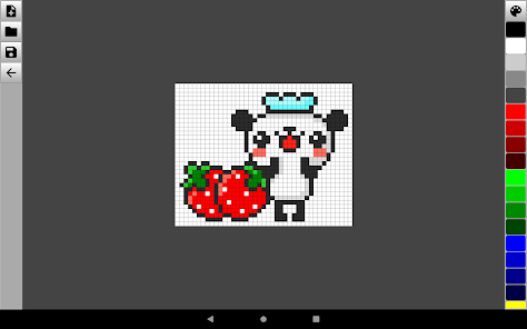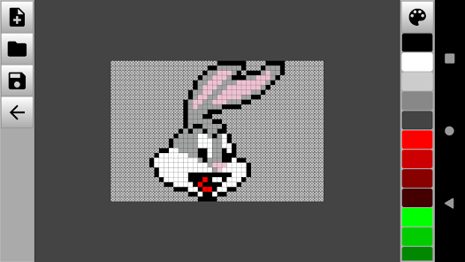 像素圖像編輯器非常簡約且易於學習。打開應用程序後,您將立即進入工作區。要開始繪圖,創建一個新的畫布,調整背景的大小和類型就足夠了。用刷子或鉛筆劃出不同顏色的點和線。您還可以使用圖庫中的現有照片和圖像作為背景。您可以將完成的圖紙保存在移動設備上的任何文件夾中。