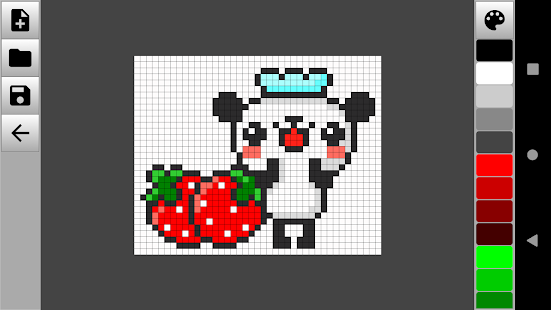 圖形編輯器有助於按像素繪製圖片,並擁有所有必要的工具。像素藝術編輯器具有廣泛的動作,並為其用戶提供無限的可能性和創造力空間。在應用程序中,您可以: