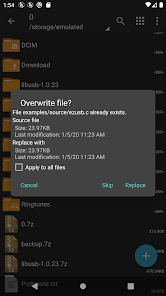 在檔案中修改文件是在外部程序中更改文件後更新檔案中文件的能力。為此請執行以下操作從存檔中打開文件選擇應用程序如果需要編輯文件保存更改然後返回ZArchiver。當您返回到ZArchiver時系統將提示您更新檔案中的文件。如果由於某些原因未提示您更新文件則可以在存儲卡上的Android / ru.zdevs.zarchiver.pro / temp /文件夾中找到修改後的文件。