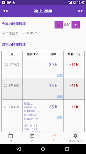 • Automatic calculation of remaining hours to do to achieve your goal.