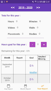 You can plan ahead your service year, by defining monthly, weekly or daily goals for your hours. Quickly visualize if you are late or in advance in your ministry.