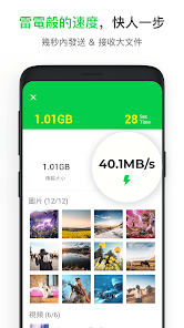 + 一鍵發送和接收速度可達 40Mb 每秒