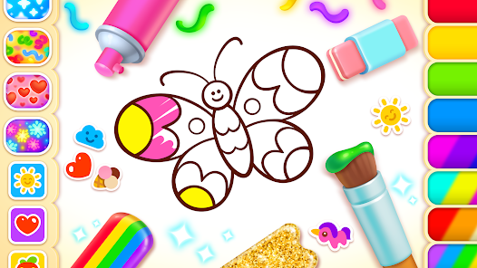 在我們的填色遊戲、繪畫遊戲和嬰兒繪畫遊戲中使用畫筆、顏料、鉛筆、記號筆和彩色印章。讓您的小藝術家隨心所欲地發揮想像力。