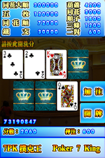 7PK的迷人之處在於有公式可依循,牌局發出來的7張牌中,前3張牌可以預測出後3張會出什麼牌,除基本注之外有三次加注機會,玩家可以先下個一兩注試試水溫,遇見有利的情形再大膽全押,是一款熟悉玩法之後就能確實達到趨吉避凶,越玩越上手的策略型撲克遊戲。