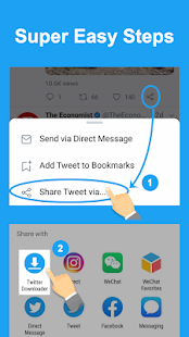 只需要在Twitter 中複製或共享推文的連結,下載任務就會自動開始。超級簡單快捷。你可以輕鬆地將Twitter 照片和影片下載到你的Android 設備上。隨時隨地欣賞下載的Twitter 影片,圖片,和GIF。