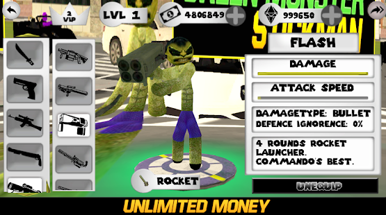 Green Monster Hulk Simulator Stickman Rope Hero Simulator.