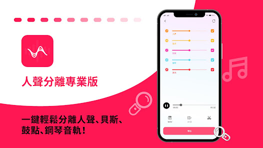 人聲分離專業版-自動識別歌曲中的鼓聲,貝斯,鋼琴聲等樂器。分離人聲和伴奏,輕鬆去除人聲,提取伴奏。高效扒譜、提取音軌。
