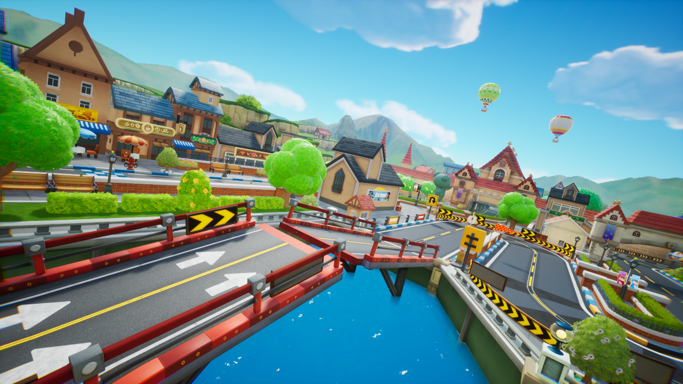 除了車輛的新增外,本次同時加入深受玩家喜愛的經典賽道「城鎮 命運之橋」,春意盎然的城鎮賽道。從空拍角度看,賽道呈現出以橋樑為對稱的結構,行駛過程中,特別要小心各區域中移動的紅色掃地機器人!