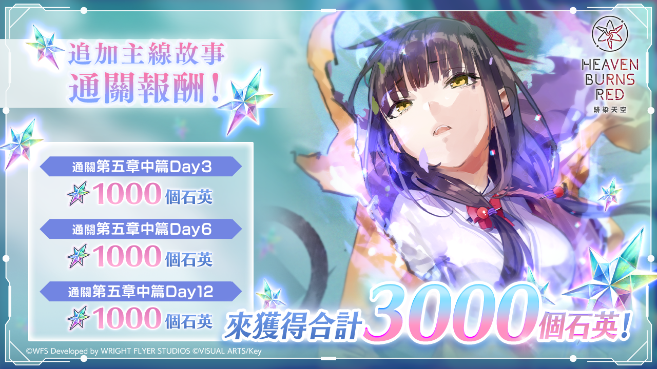 Wright Flyer Studios×Key《緋染天空 Heaven Burns Red》,於 2025 年 4 月 18 日(五)上午 10 點起開始「黃金週豪華特別活動」。