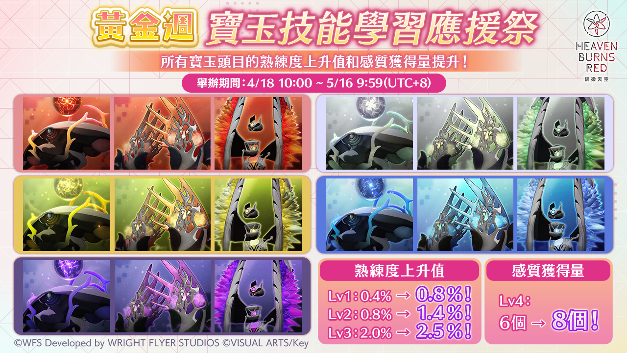 期間內所有寶玉頭目的熟練度上升值和感質獲得量提升!