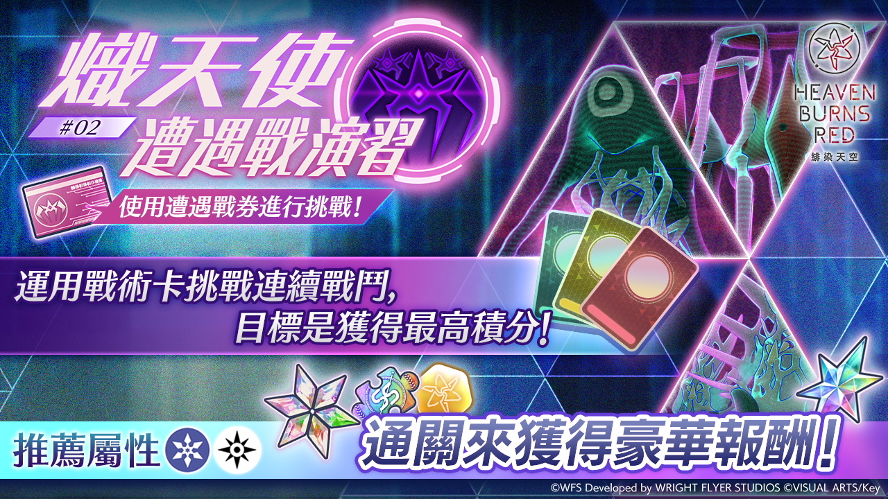 「熾天使遭遇戰演習」為期間限定舉辦的連續戰鬥活動。使用每戰可獲得的「戰術卡」來通關連續戰鬥,以最高積分為目標吧!本次為第二次舉辦,吸收各方寶貴的意見後實施了各項更新。