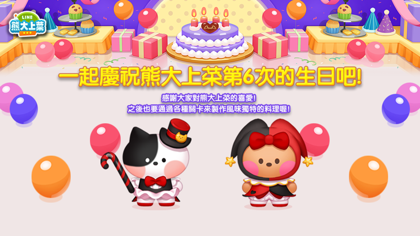 《LINE 熊大上菜》將迎來 6 週年囉!為了慶祝這 6 年來大家的陪伴與共同製作了上百道料理的喜悅,這次舉辦特別活動,將送出最高可獲得 6,000 金幣的隨機金幣箱等好禮,還有台灣限定專屬社群活動等你來加入!