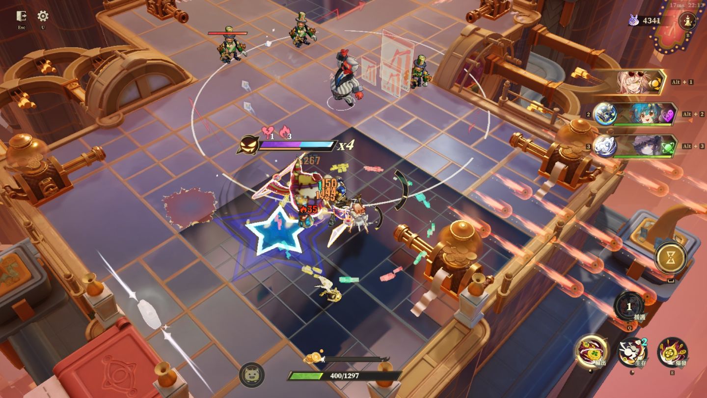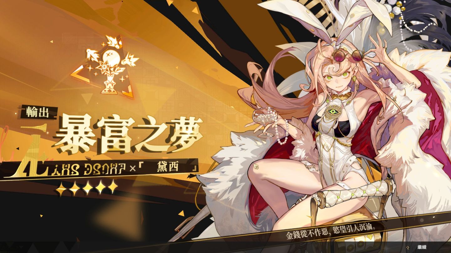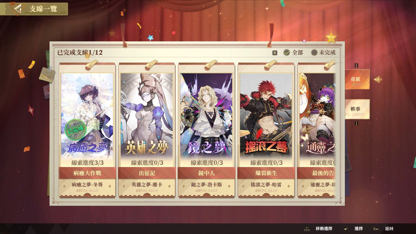 教學過完後,常駐五星是「荒誕之夢」(小丑)和「未來之夢」。荒誕之夢的優點是前期傷害高,操作相對簡單 ,能讓新手快速體驗到割草的爽快感,尤其適合處理 Boss,但是當玩家有其他五星傷害角很容易被替代,除非有累積三冠的變化性。