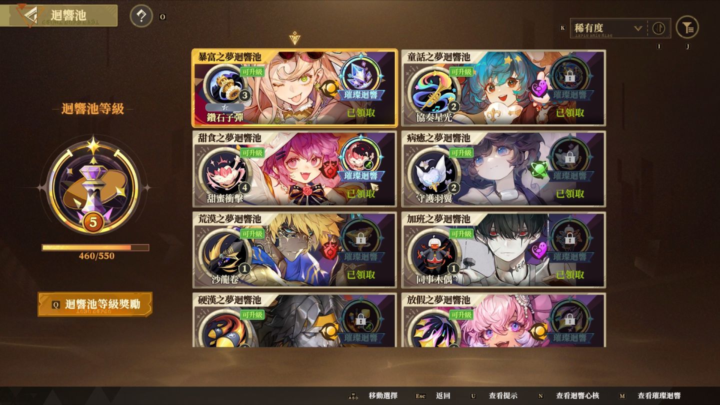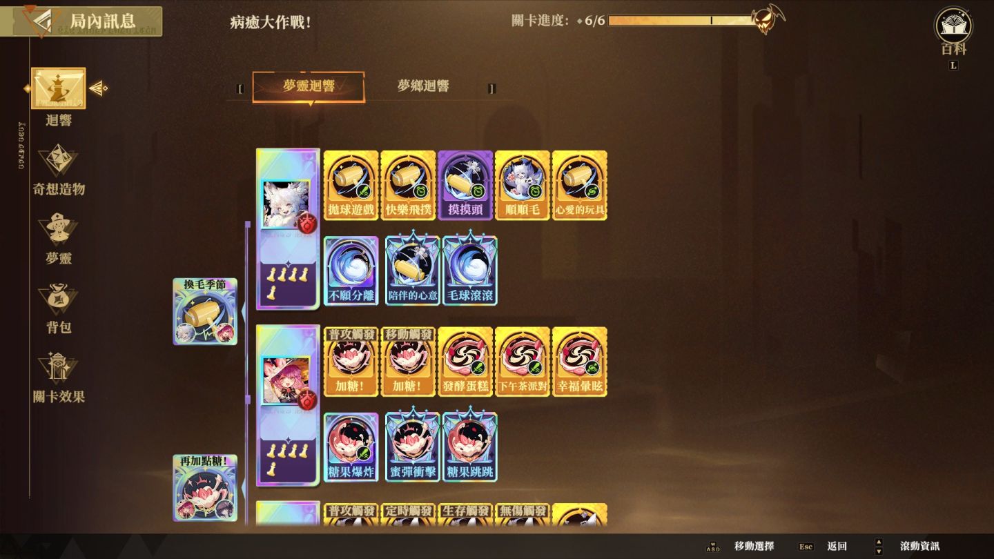 讓每一局遊戲體驗截然不同的是 Roguelite 的核心「迴響」系統 。在小關卡完成戰鬥時玩家會拾取迴響,這些迴響能大幅強化角色的技能和流派特性,累積收集後還能獲得強力的專屬迴響,改變玩家使用夢靈的方式。