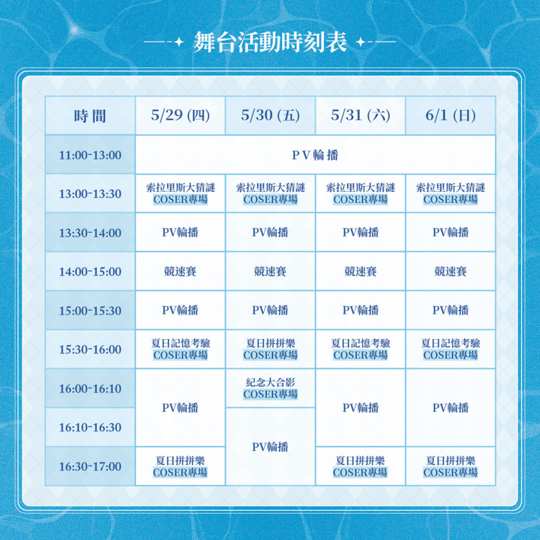 活動時間:2025 年 5 月 29 日(四)~2025 年 6 月 1 日(日),每日 11:00~17:00(UTC+8)