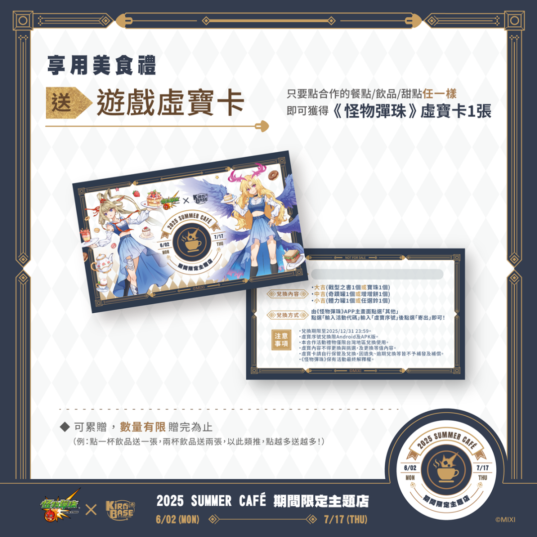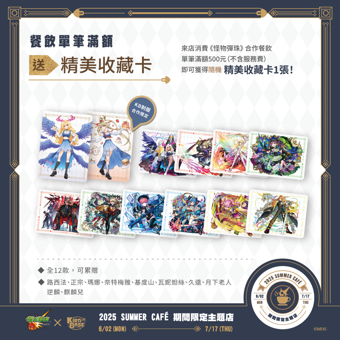 來店打卡並tag《怪物彈珠》與《KIRABASE》官方粉專,即可獲得精美明信片(共4款,自選1款)。