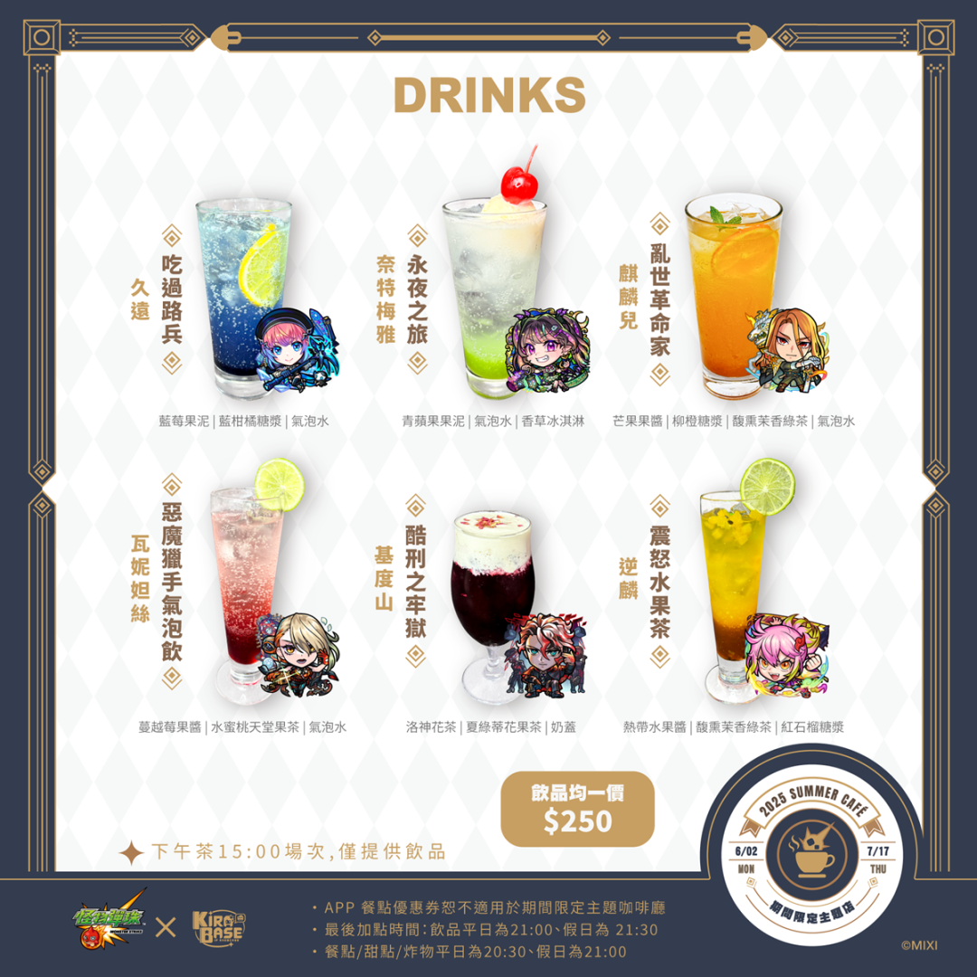 - 奈特梅雅(Nightmare) – 黑暗夢魘化身,來自深淵的試煉者,飲品以青蘋果與香草冰淇淋描繪其甜中帶險的迷人魅力。