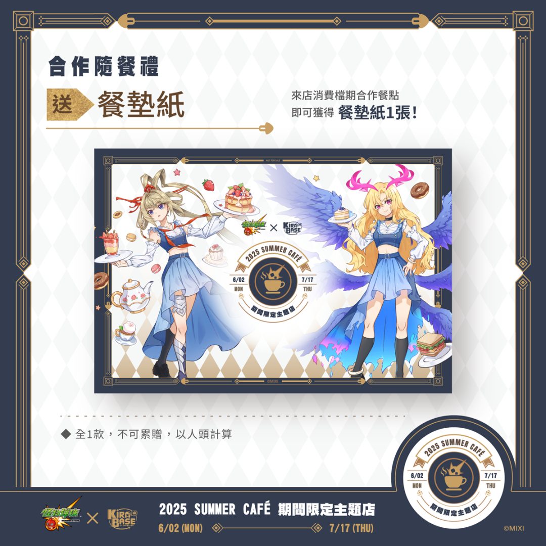 - 餐點再加碼送限定餐墊紙 1 款(每人限一)