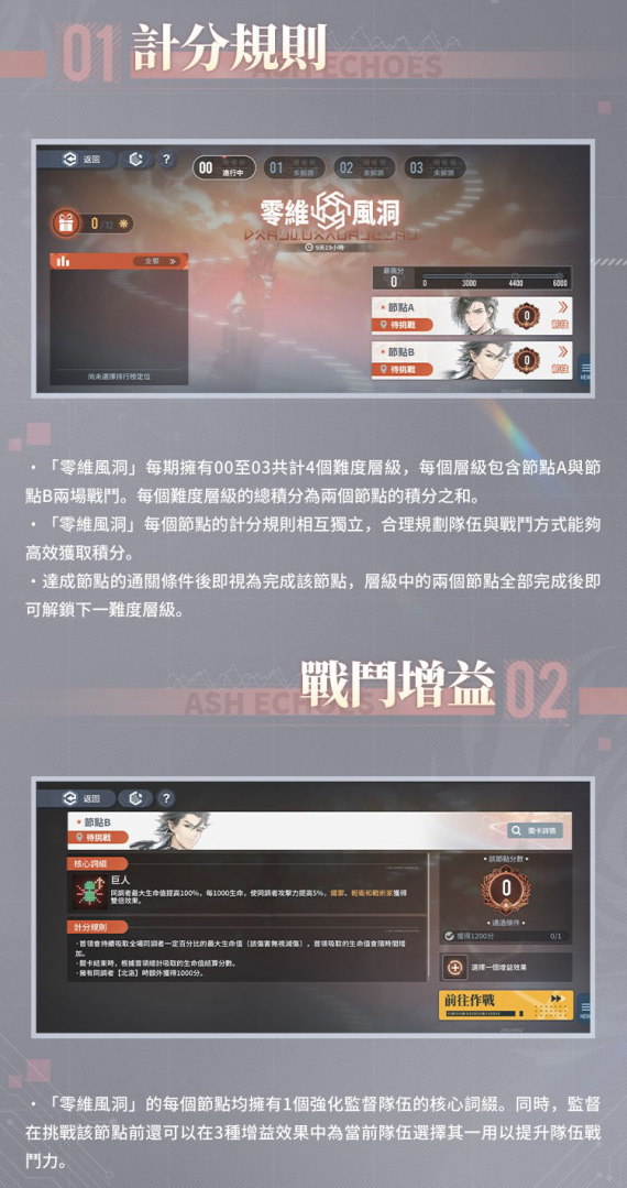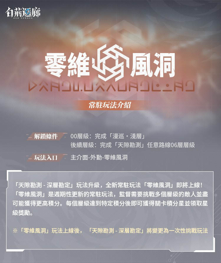 ※「零維風洞」玩法上線後,「天隙勘測 – 深層勘定」將變更為一次性挑戰玩法。