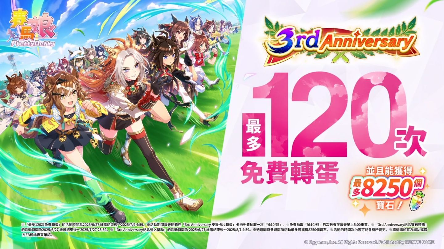 由日本 Cygames 開發、小萌科技代理的養成手機遊戲《賽馬娘Pretty Derby》繁體中文版於 6 月 27 日正式營運 3 週年,並開始週年紀念活動。