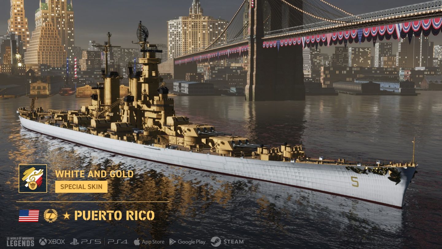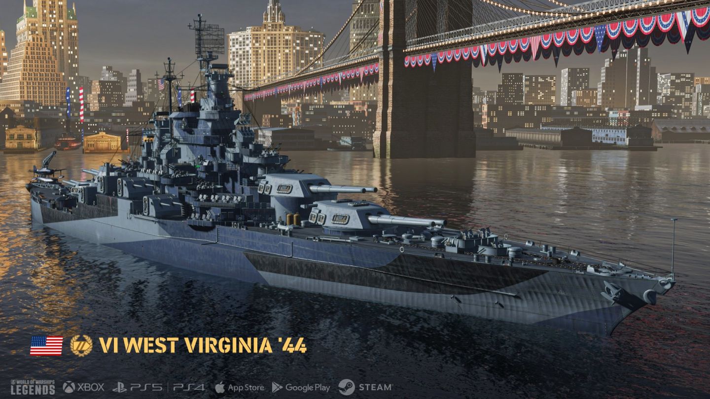 除了VIII 階加值主力艦 Wisconsin,玩家也可透過傳奇階級巡洋艦 Puerto Rico 和 VI 階加值主力艦 West Virginia ’44等全新美國戰艦來歡慶美國獨立日。