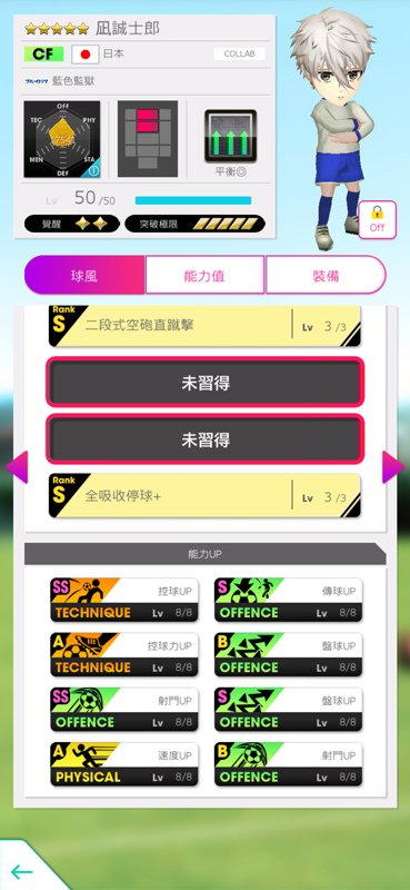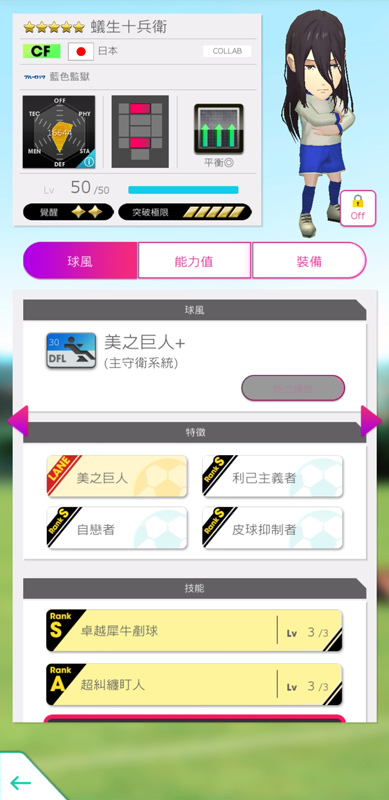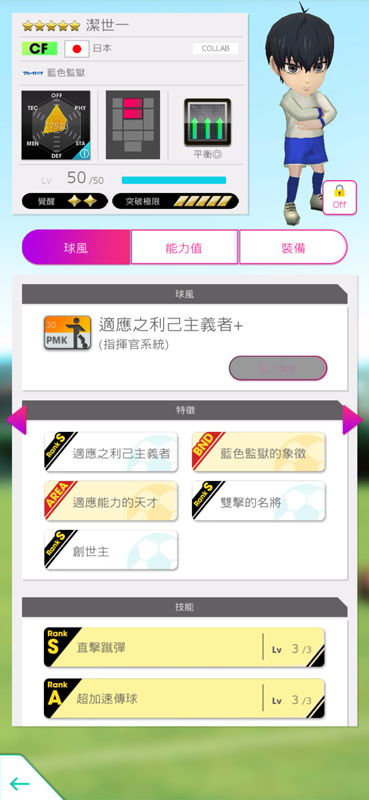 此外,所有新★5 球員都持有「利己主義者」特徵,球賽中只要自身首次射門得分,全能力將大幅提升,直到球賽結束。另外本次登場的「糸師凜」是首位持有 2 項 SS 級能力、4 項 S 級能力的球員。